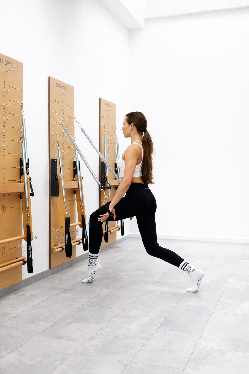Die Federn und der Widerstand der Geräte ermöglichen eine präzisere Muskelaktivierung als klassisches Barre — jede Bewegung wirkt tiefer und gezielter.